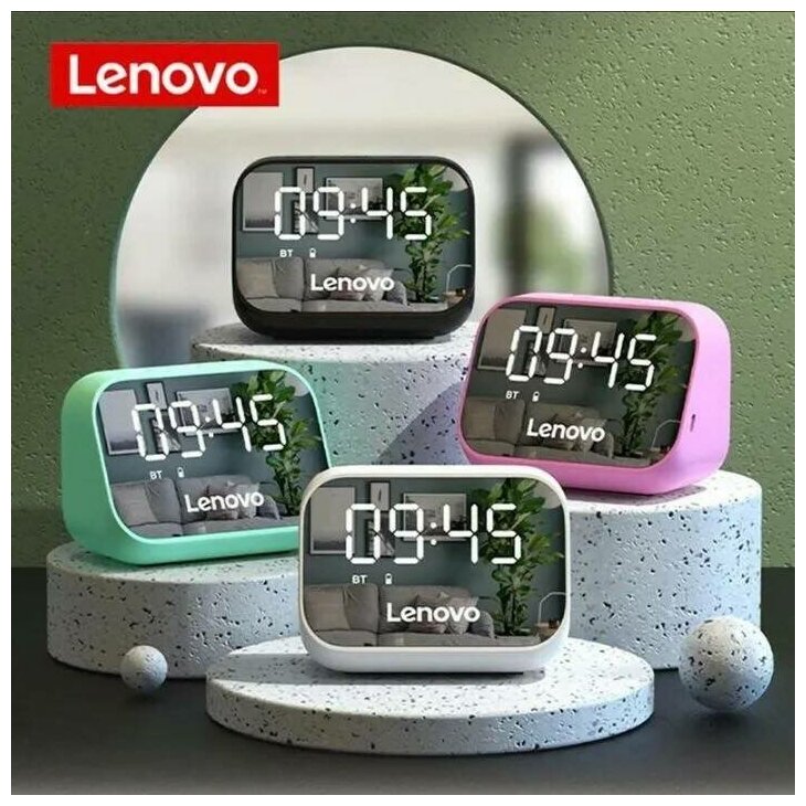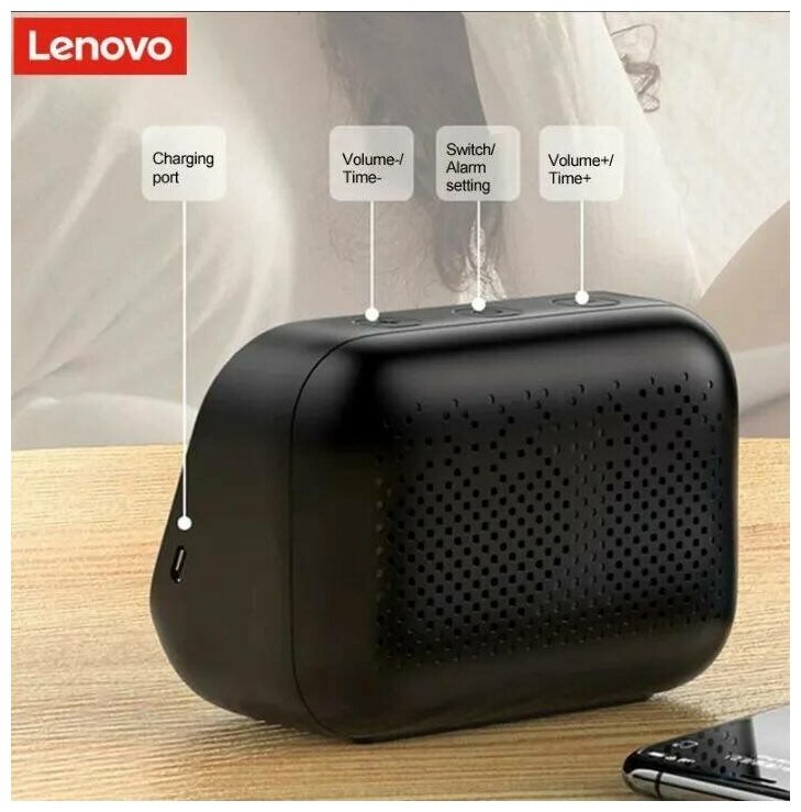 Lenovo Беспроводная Bluetooth портативная колонка с часами Lenovo TS13, черный интересное: