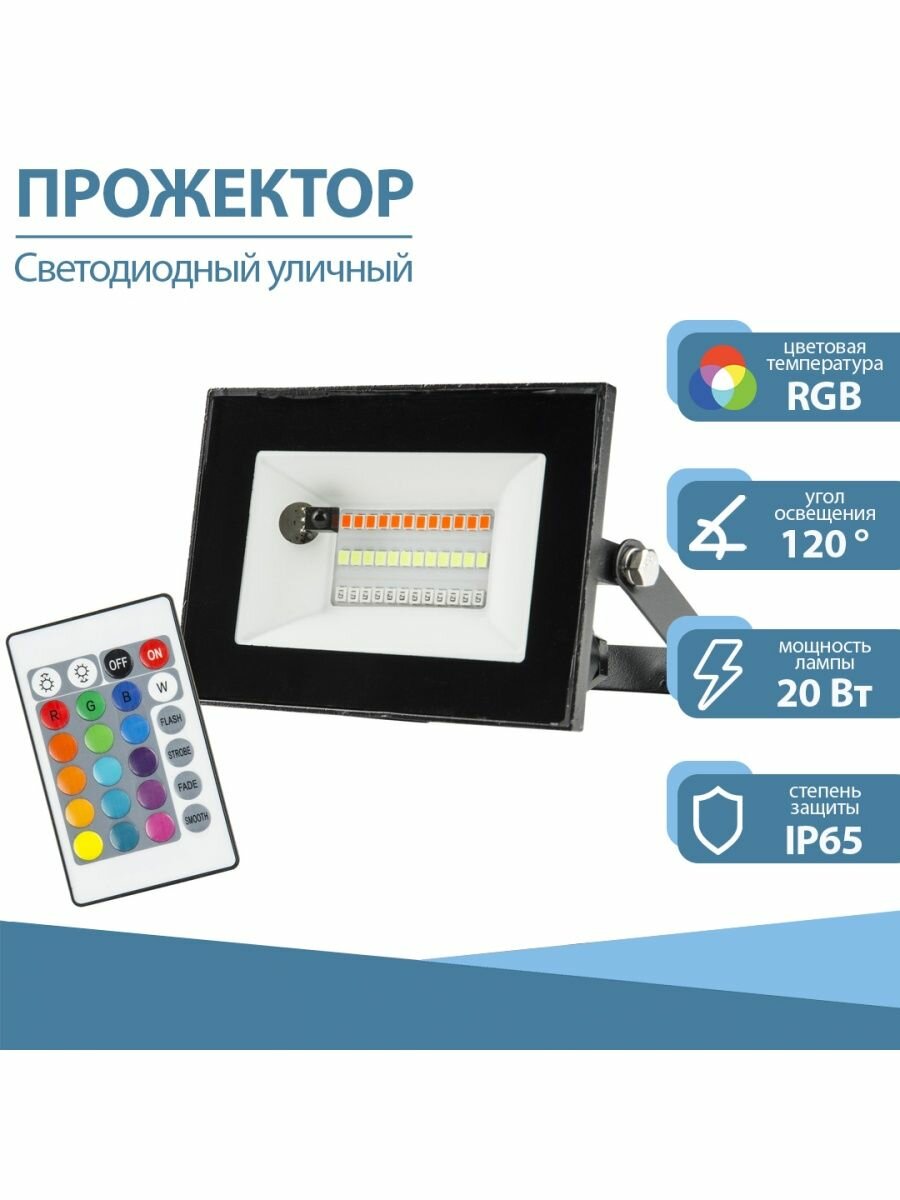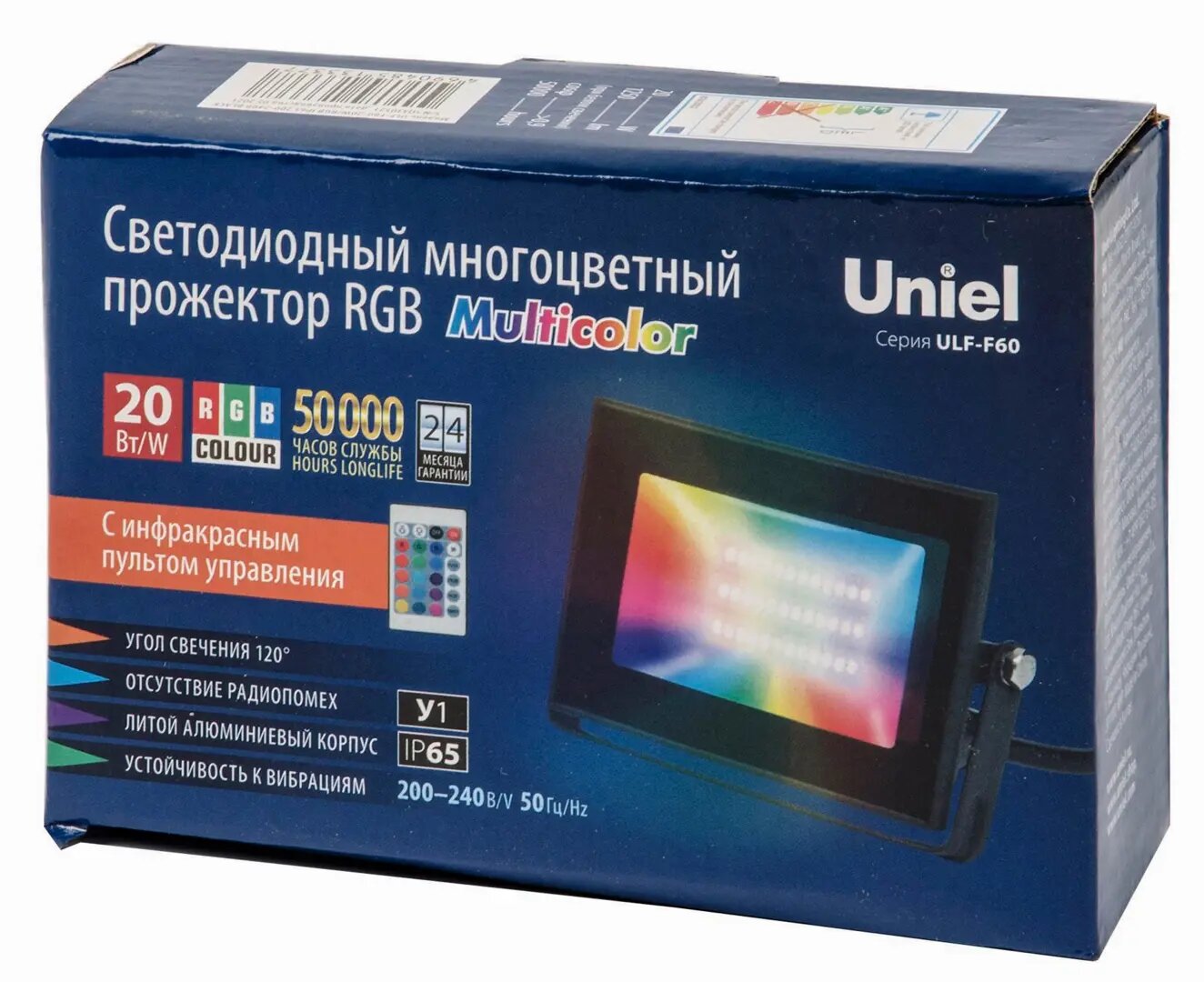 Прожектор светодиодный Uniel ULF-F60-20W/RGB, 20 Вт, свет: RGB