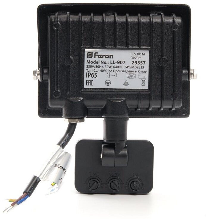 Feron LL-907 Светодиодный прожектор с датчиком 30W 6400K 230V черный IP44 153*178*54мм 29557 .