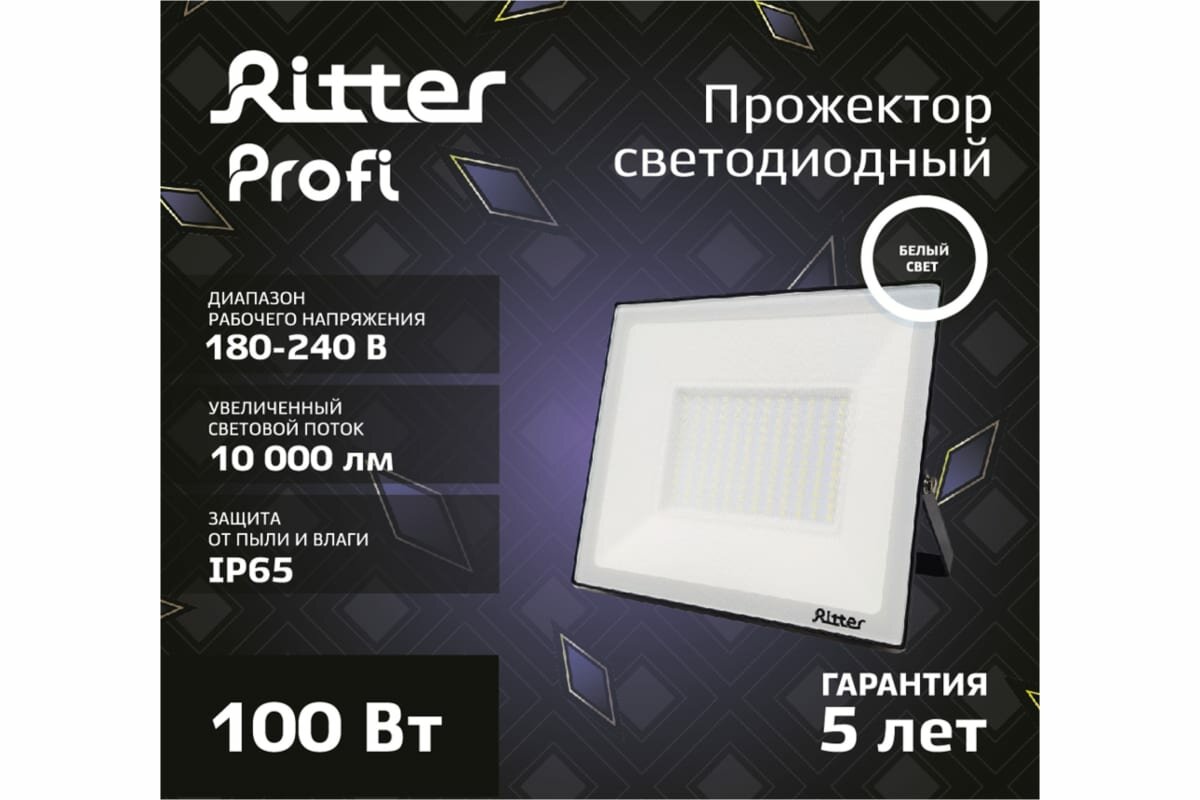 Ritter Прожектор светодиодный серия Profi 230В 100 Вт 4000К 10000Лм IP65 черный 53419 2 . интересное:
