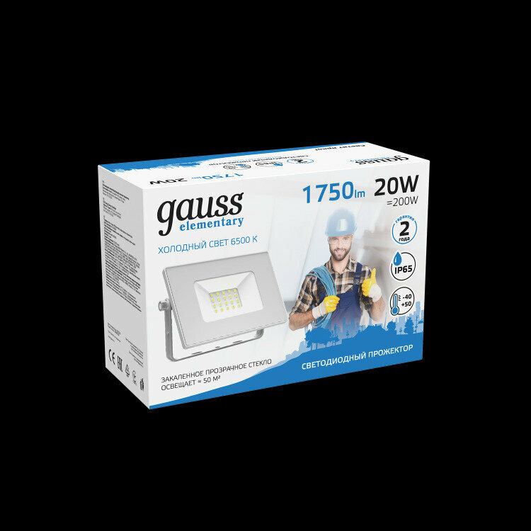 Прожектор светодиодный gauss Elementary 613120320, 20 Вт, свет: холодный белый