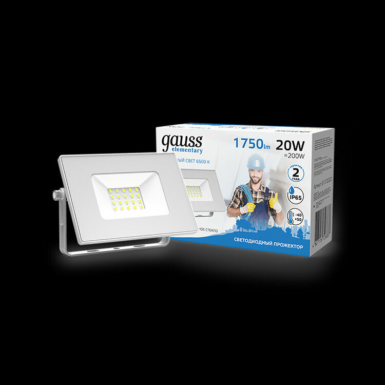 Прожектор Gauss Elementary 20W 1750lm 6500K 200-240V IP65 белый LED