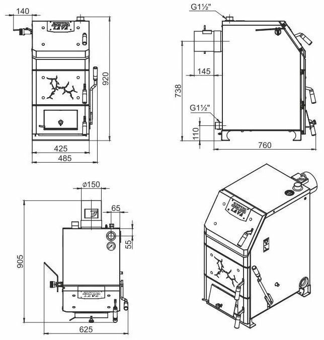 | Топливо | дрова / уголь / древесные брикеты / угольные брикеты |