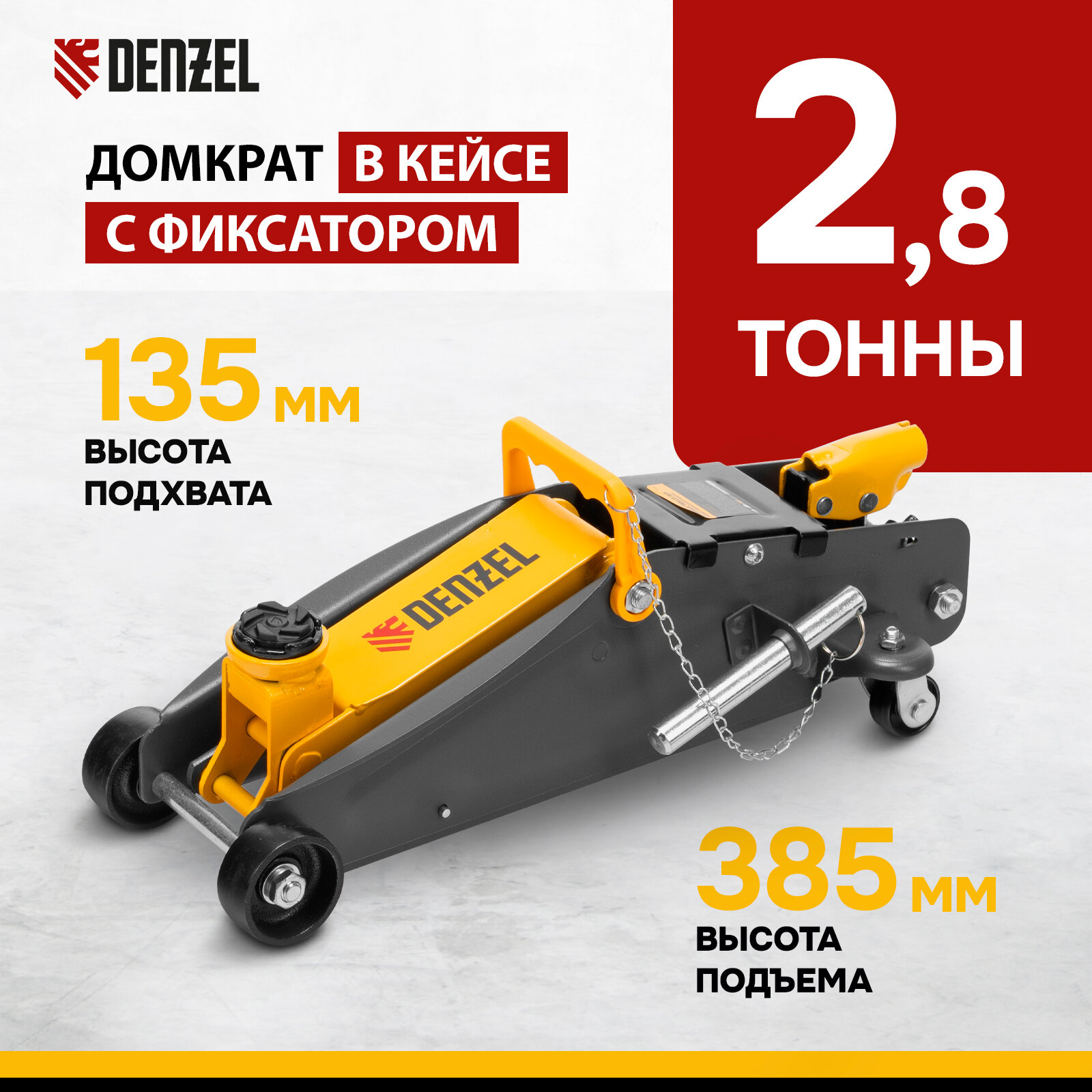 Домкрат гидравлический подкатной с фиксатором, 2,8 т, 135-385 мм, в кейсе Denzel