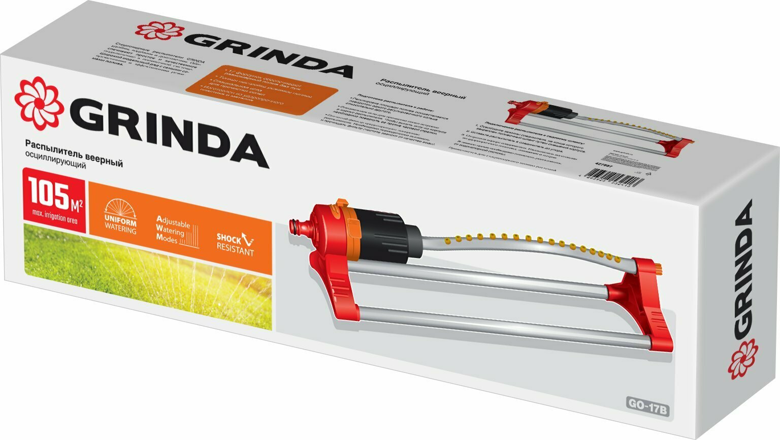 GRINDA GO-17B, 105 м2 полив, 17 форсунок, латунные сопла, распылитель веерный, пластиковый
