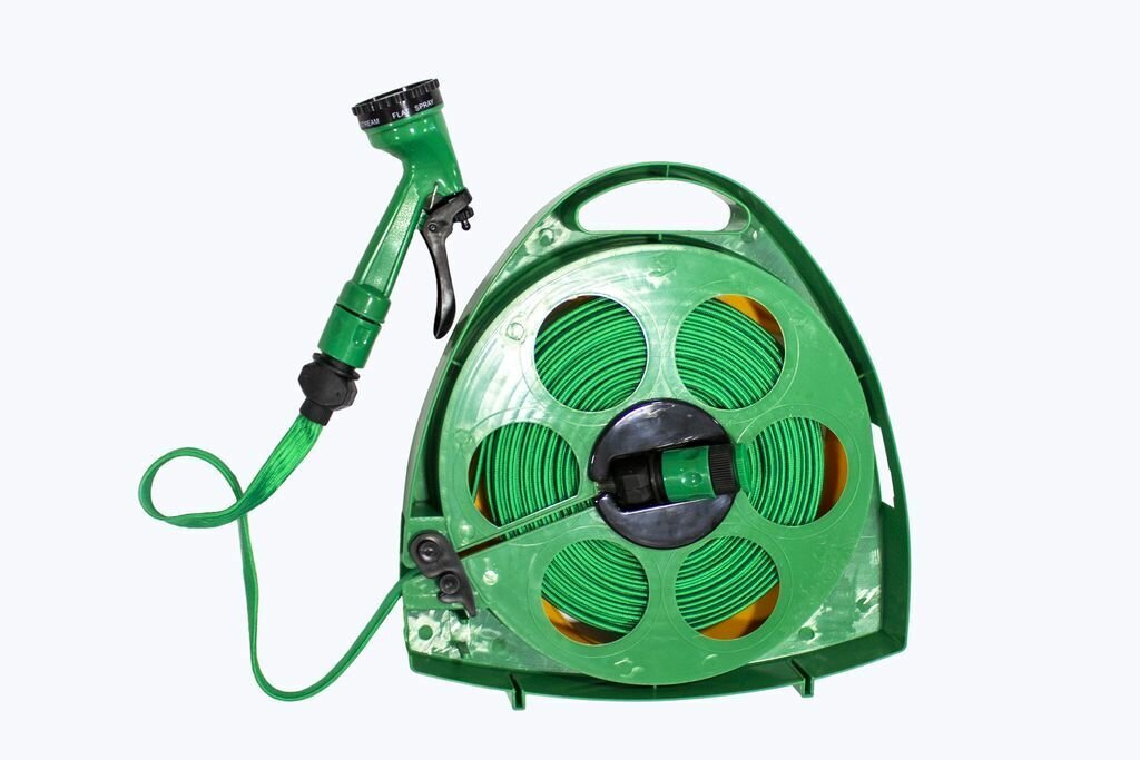 Шланг садовый ПВХ на катушке с упорами в комплекте с пистолетом-распылителем 48850 TG7301012