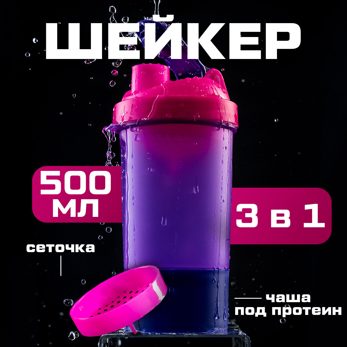 Купить Шейкер спортивный "Вид 7", фиолетовый, с чашей под протеин 500 мл 3794668