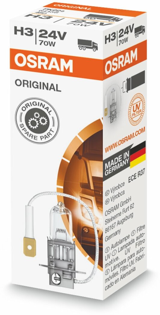 Лампа H3 24V 70W PK22s ORIGINAL LINE качество оригинальной з/ч (ОЕМ) 1 шт. HCV Osram 64156