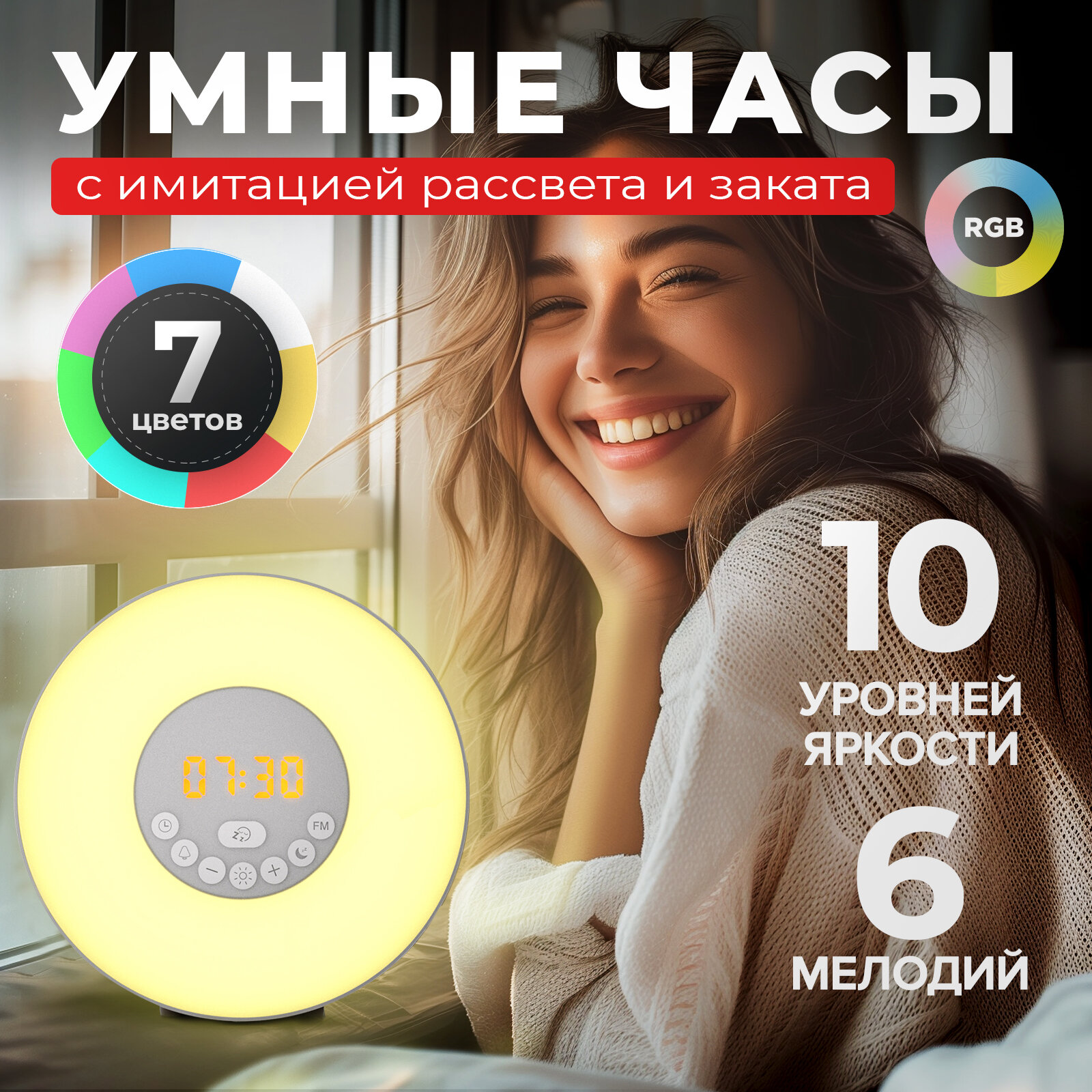 Ниже Вы можете прочитать отзывы на Умный электронный будильник с подсветкой, ночник с имитацией рассвета и заката. FM-радио, 6 встроенных мелодий, регулируемая яркость. Подарок на 8 марта, ознакомится с подробными характеристиками, посмотреть интересные обзоры и фотографии на Умный электронный будильник с подсветкой, ночник с имитацией рассвета и заката. FM-радио, 6 встроенных мелодий, регулируемая яркость. Подарок на 8 марта.