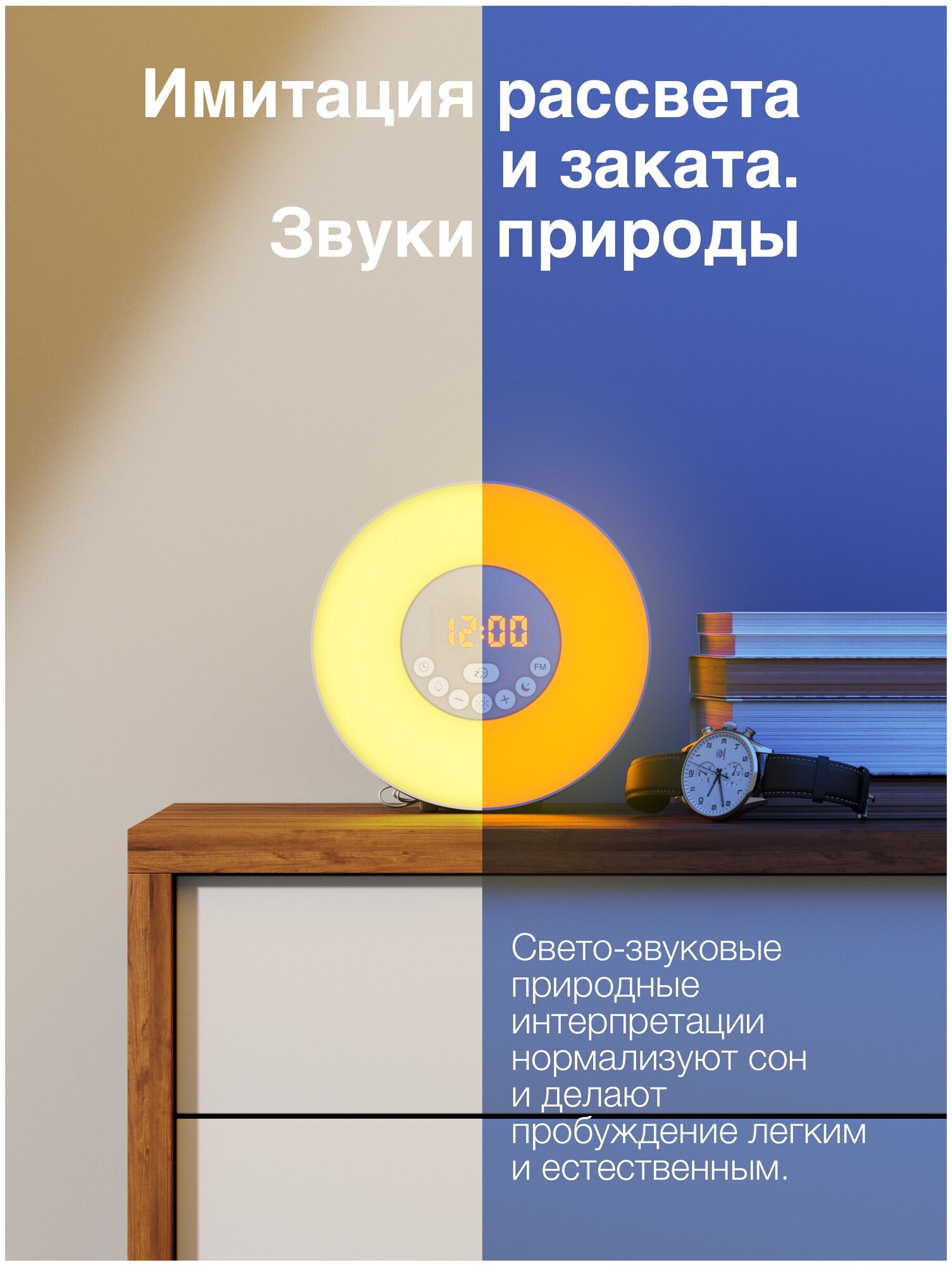 Функция имитации рассвета и заката также очень полезна для моего здоровья и благополучия. Я больше не просыпаюсь с ощущением раздражительности, потому что теперь мой будильник постепенно увеличивает яркость света, чтобы я могла проснуться легко. А вечером он постепенно снижает яркость, создавая атмосферу спокойствия и релаксации. еще у него есть радио и мелодии свои)