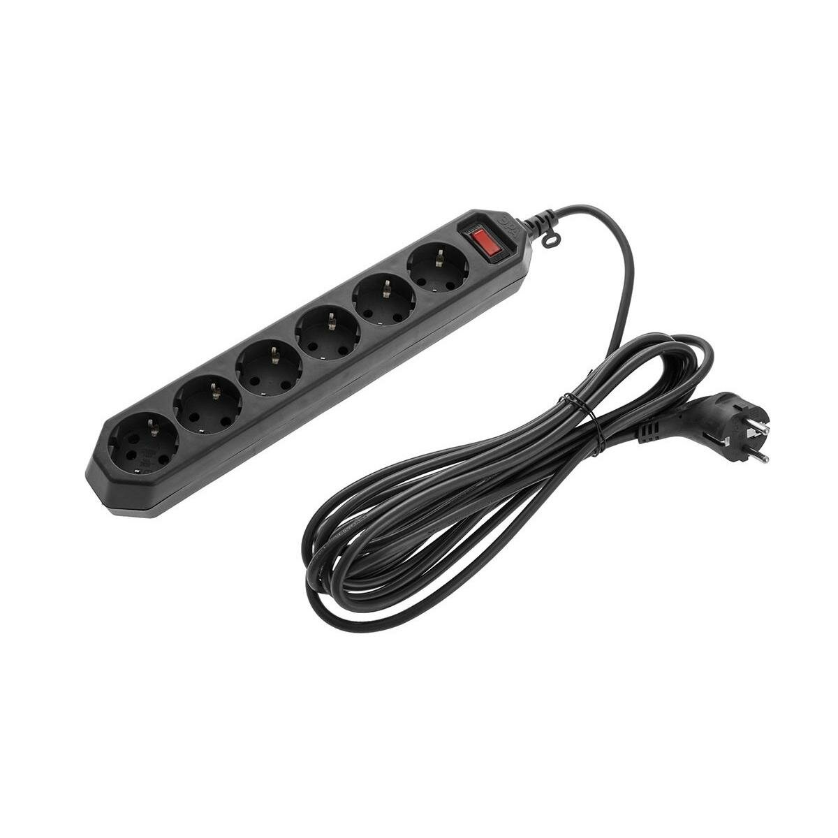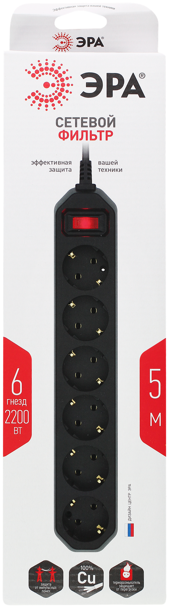 Сетевой фильтр Эра черный, 3 м, 6 розеток