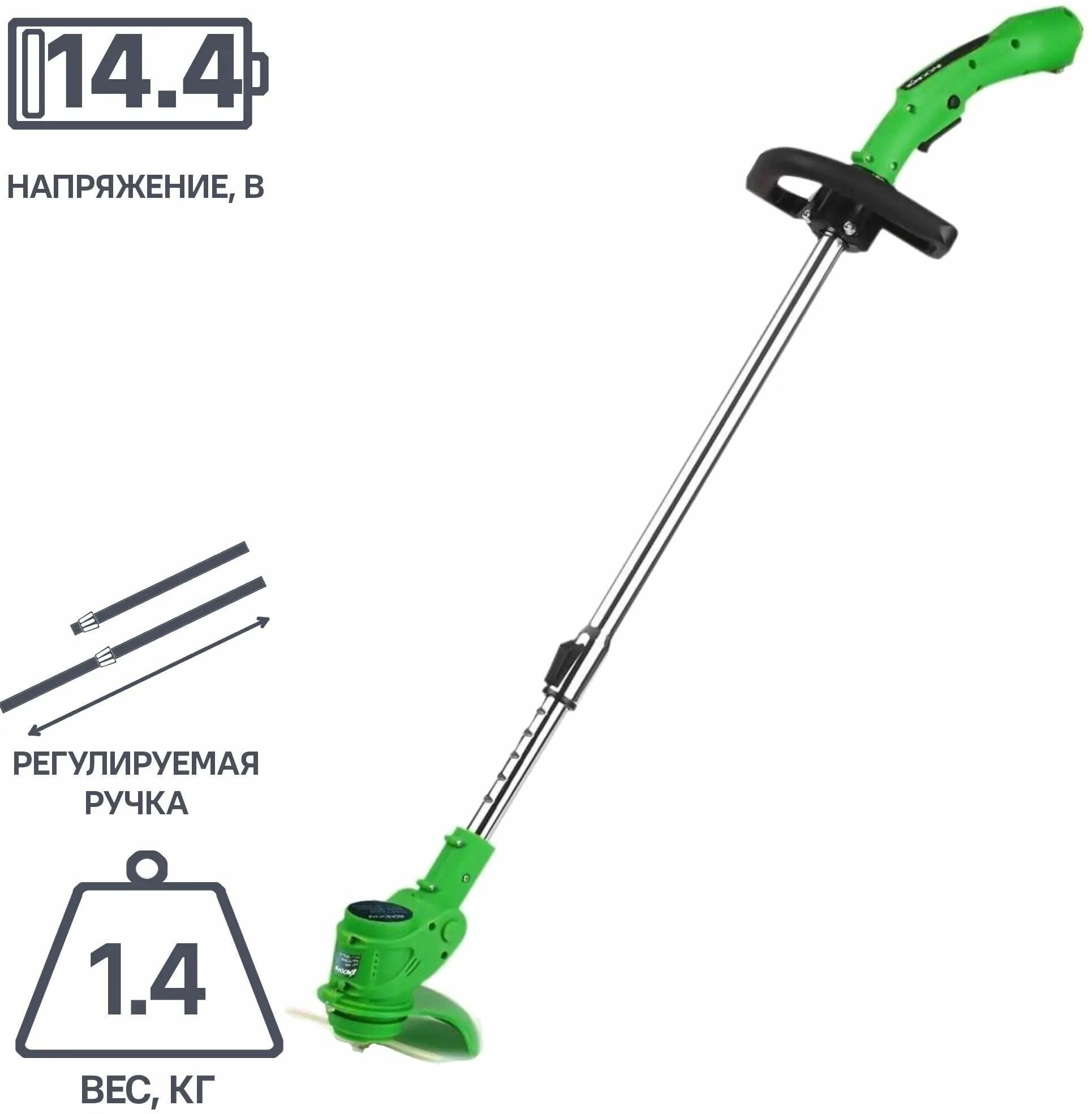 | Подробная комплектация | телескопическая штанга с возможностью поворота режущей головки; режущий элемент — пластиковый или металлический нож; аккумулятор и зарядное устройство входят в комплект поставки. |