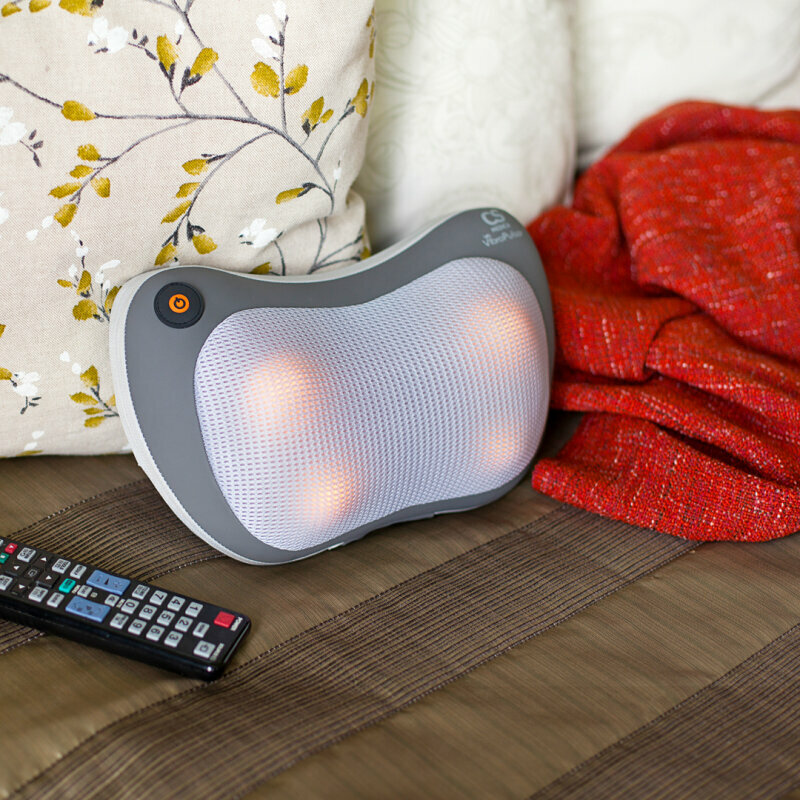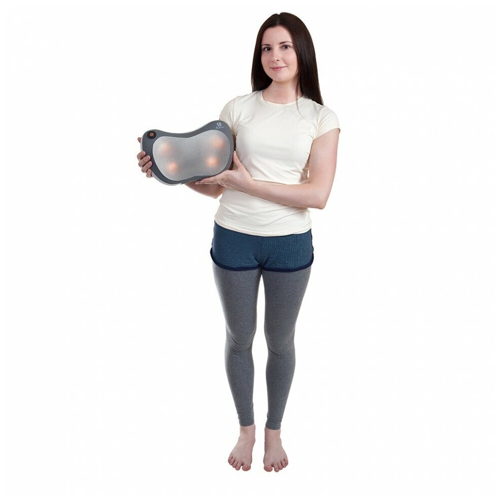 Есть функция прогрева, во время работы подушка постепенно нагревается. Тканевой чехол можно снять и постирать. |