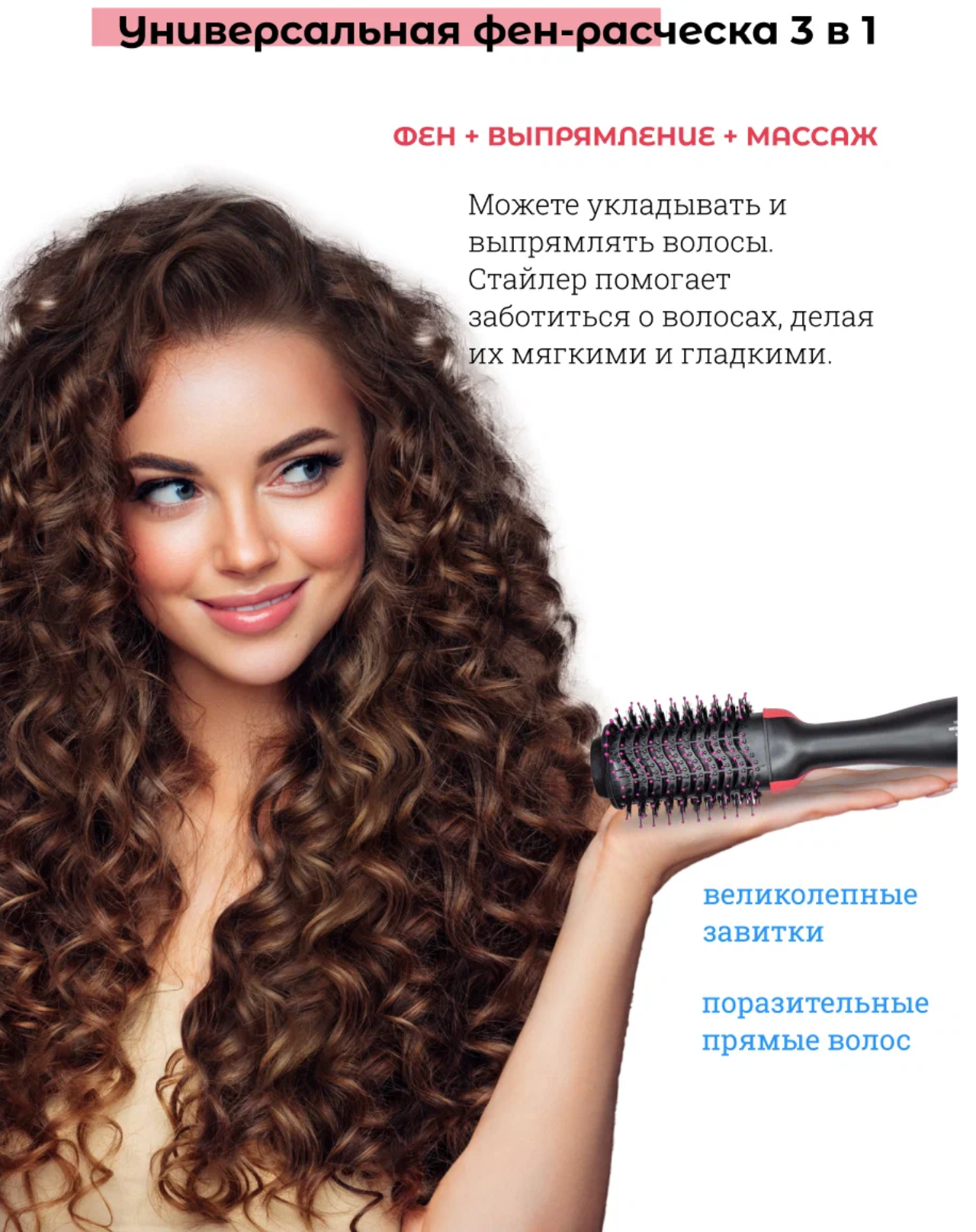 Фен-щетка для волос / Расческа с ионизацией One Step Фен-щётка (расчёска-фен) для волоc 3 в 1 интересное: