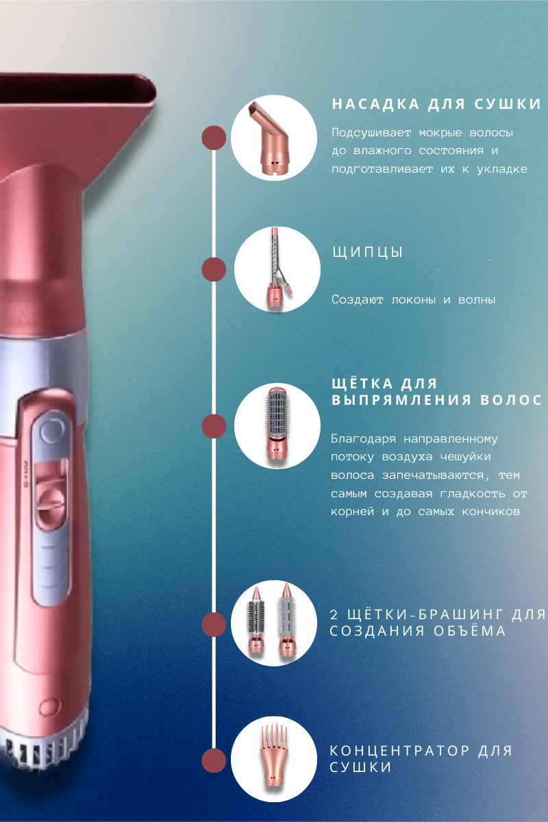 Фен Мультистайлер 7 в 1! GEMEI-4831 PROFESSIONAL HOT AIR STYLER(розовый) отличного качества!