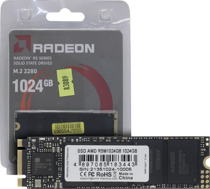 Твердотельный накопитель SSD M.2 2280 1024GB AMD Radeon R5 Client SSD R5M1024G8 Sata 6Gb/s, 3D Tlc,