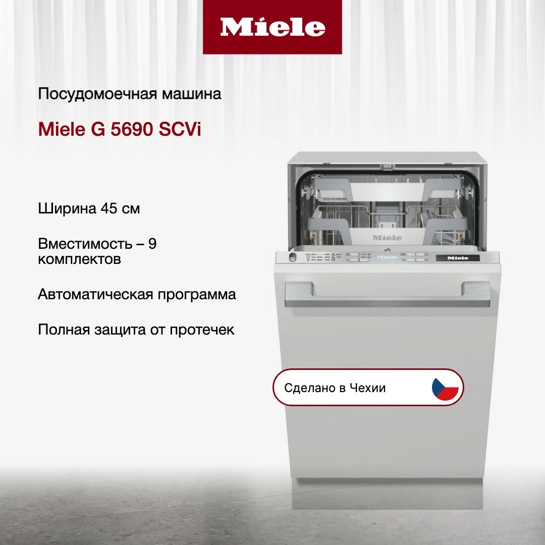Встраиваемая посудомоечная машина MIele G 5690 SCVi, ширина 45 см, 9 комплектов посуды, 3 корзины, защита Waterproof
