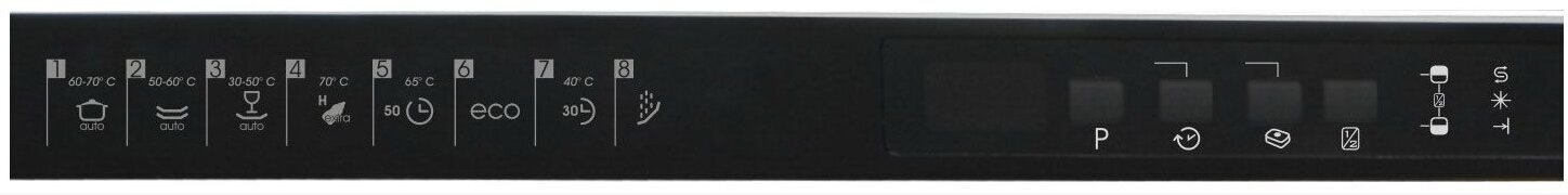 | Программы | автоматическая / быстрая / деликатная / интенсивная / предварительное ополаскивание/замачивание / режим половинной загрузки / стандартная / экономичная |
