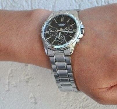 | Отзыв: | Долго выбирал по соотношению цена-качество-дизайн. Выбрал их и прям - МОЕ. Даже довольно длинный браслет, когда 4 звена мастер удалил, четко сел на мою кисть, и не болтается и не передавливает. Прям вот тютелька в тютельку, то что доктор прописал. Брал на замену свом прежним Сейко, в них слишком маленький циферблат, глаза уже плохо видят и раздражало, что там самозавод, 1.5 дня не поносил и все - заводи заново, настраивай заново, поэтому целенаправленно искал кварцевые с батарейкой, чтоб вообще не париться с этим.