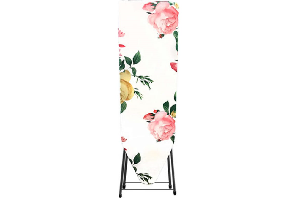 Волжаночка Доска гладильная напольная складная с подставкой для утюга, розеткой и удлинителем, размер 110х30 см., цвет розовый