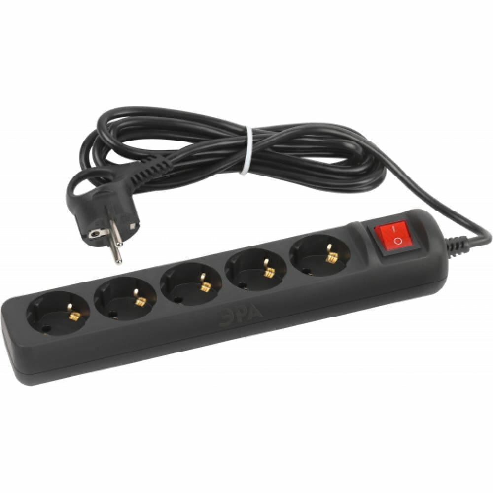 Купить Эра Б0057731 Удлинитель электрический UX-5es-3m-B с заземлением с выключателем 5 розеток 3м ПВС 3x0,75мм2 черный