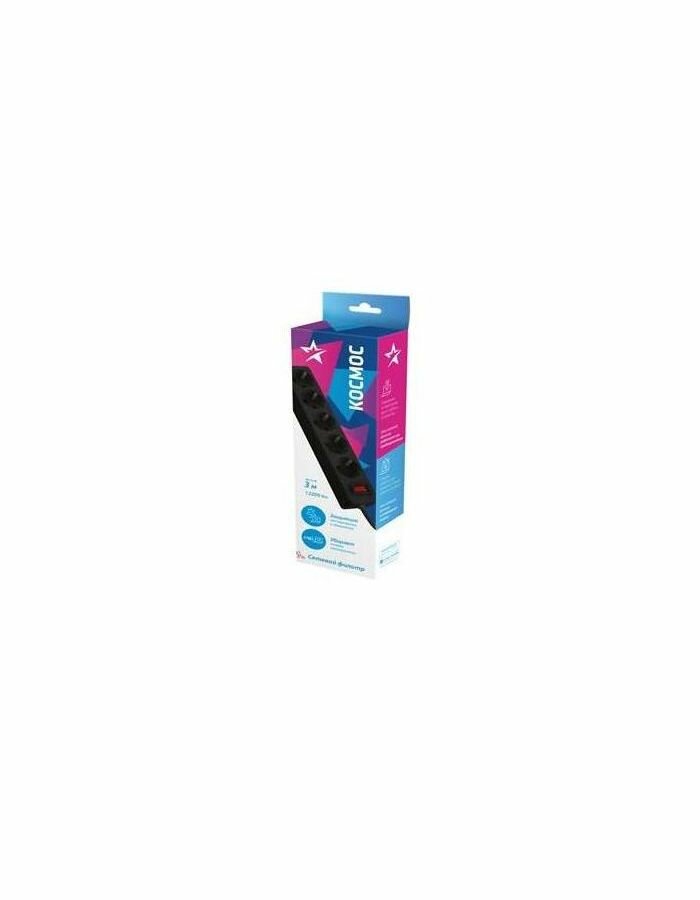 Сетевой фильтр космос 3 м, 5 розеток, пвс 3х0,75мм2, черный