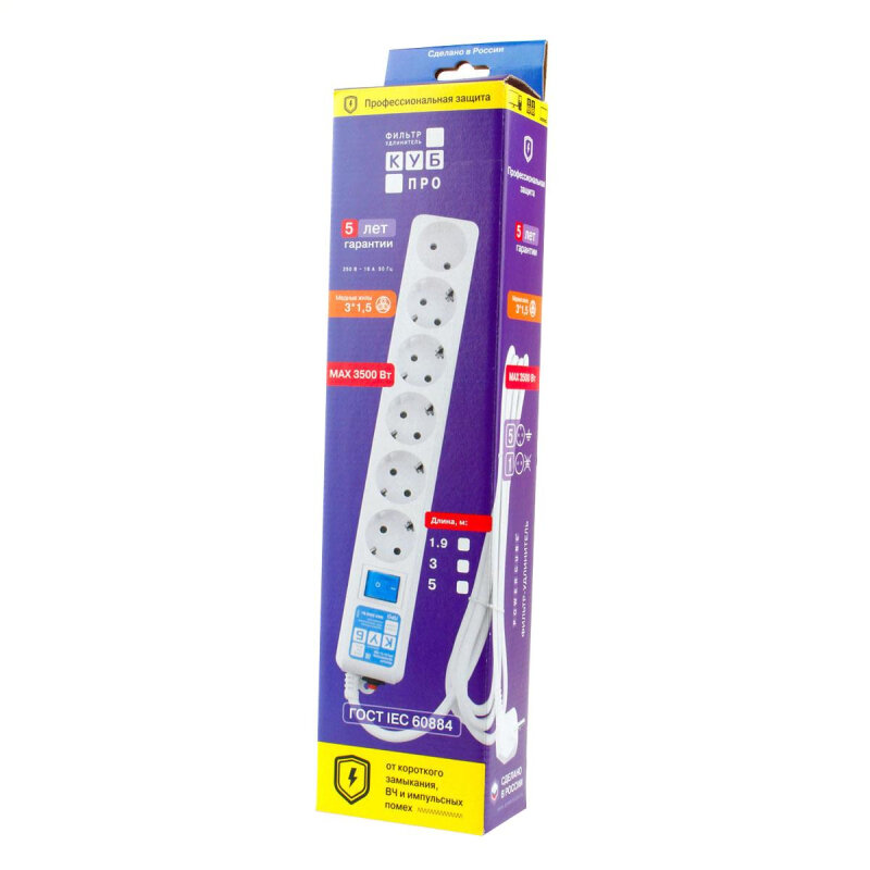 Купить Сетевой фильтр Power Cube PRO, 5.0 м белый 16А/3,5кВт(SPL(5+1)-16B-P-5М)