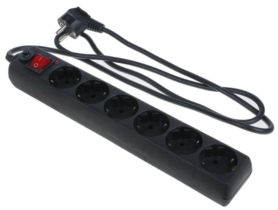 Сетевой фильтр СФ-06В с выключателем 6 гнезд длина 1,5 метра с заземлением цвет черный, TDM SQ1304-0011 (1 шт.)