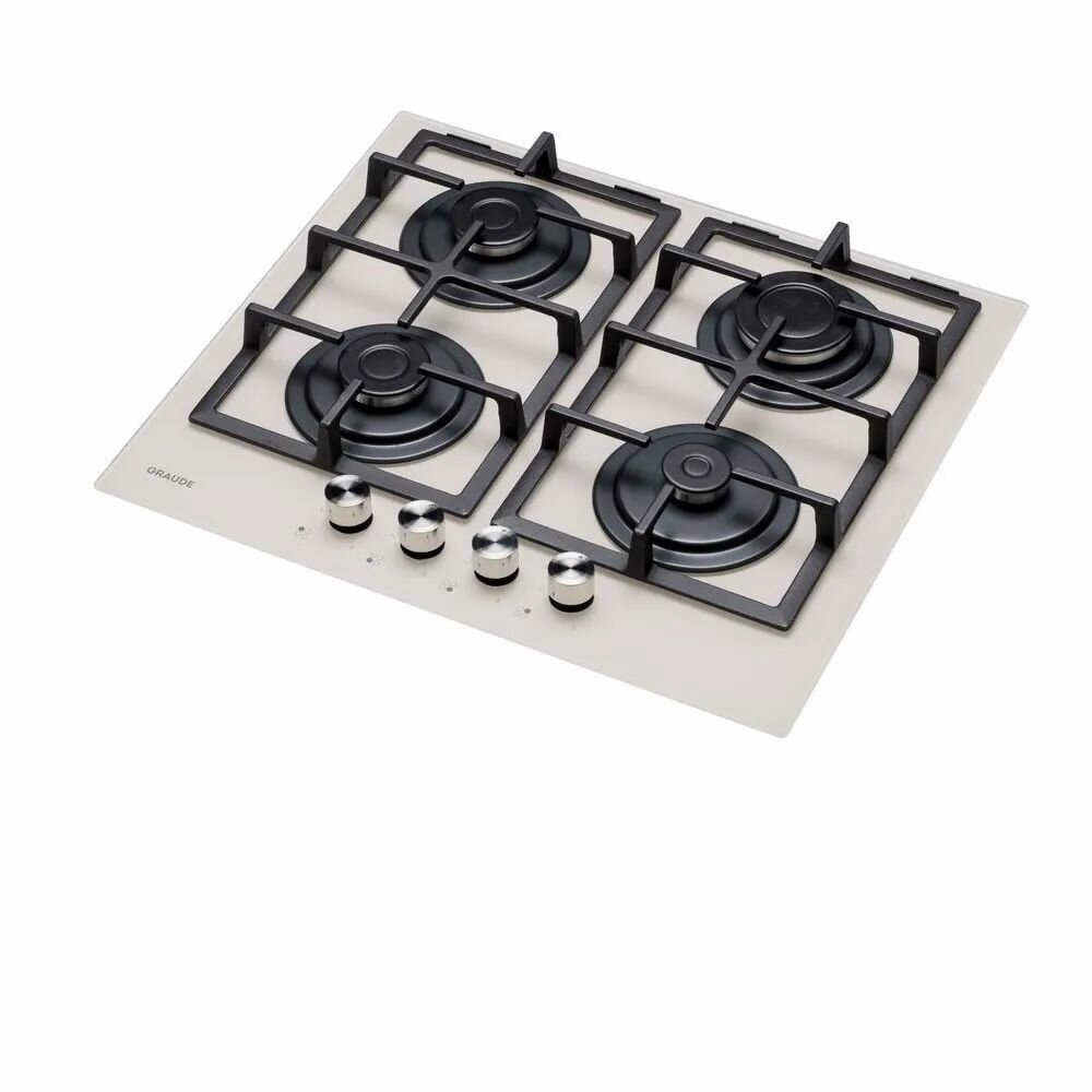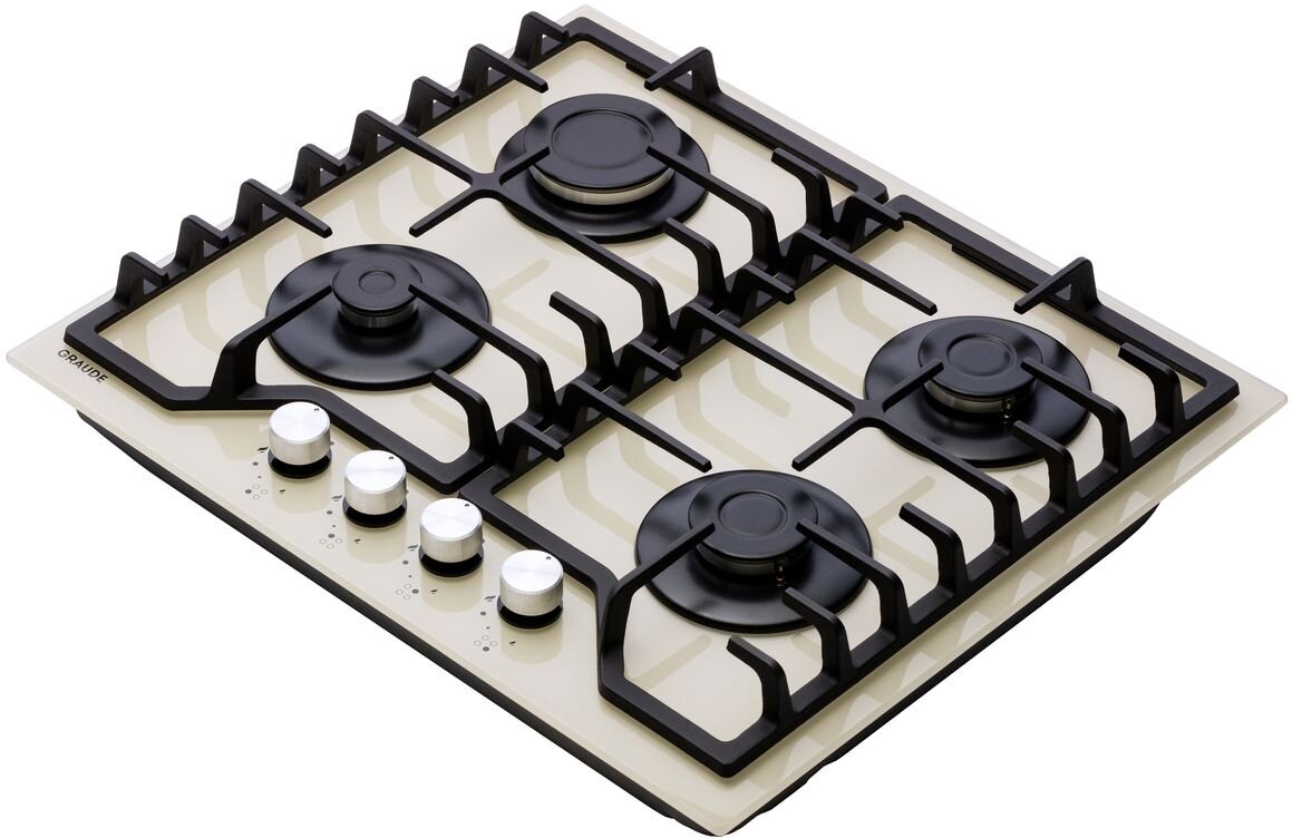 Газовая варочная панель Graude GS 60.1 C, кремовая, ширина 60 см, закаленное стекло, чугунные решетки, 4 конфорки, система GasControl