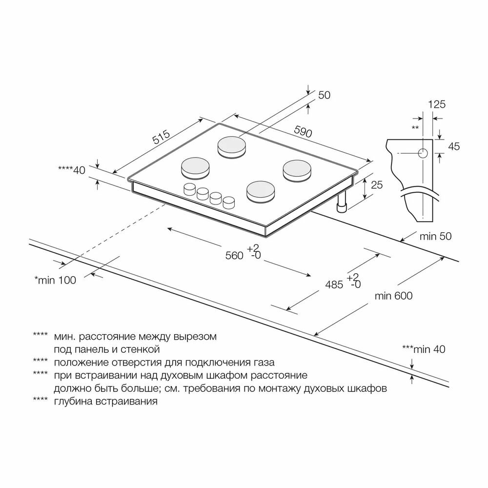 | Ширина для встраивания | 56 см |