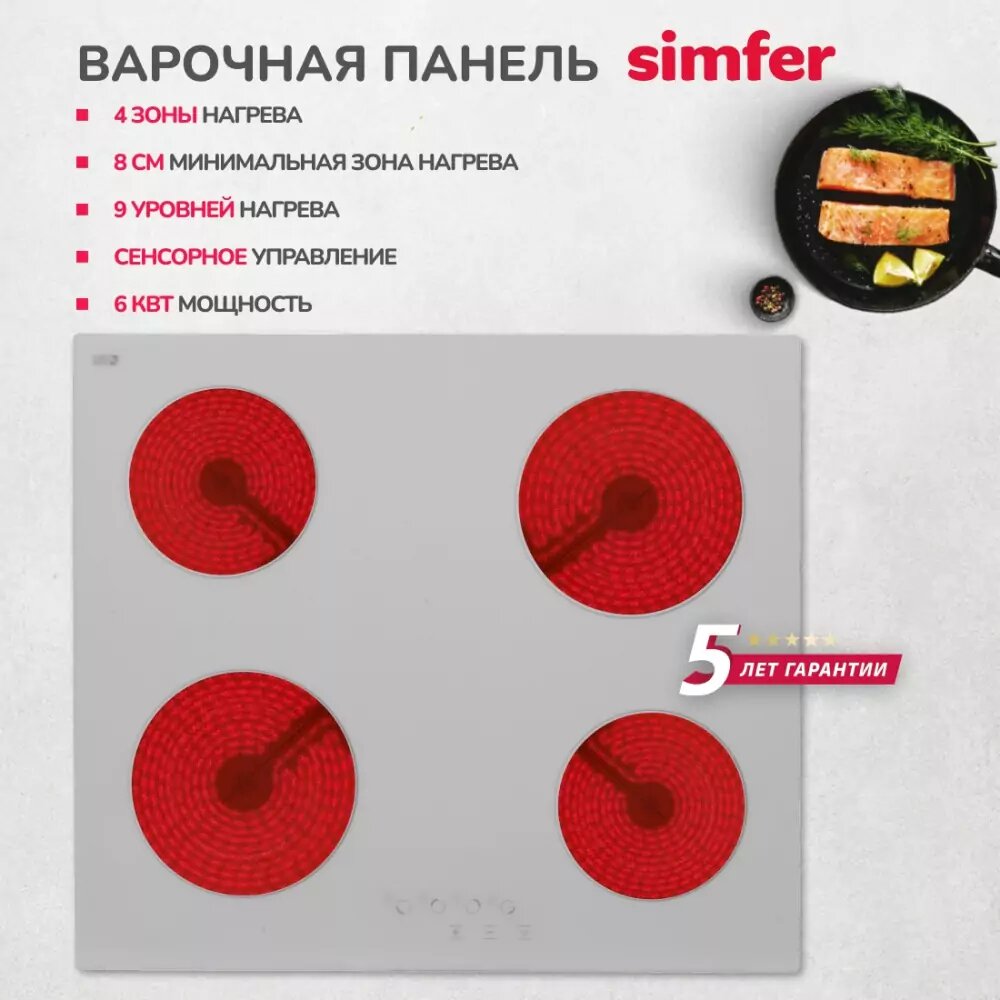Электрическая варочная панель Simfer H60D14W016, цвет панели белый, цвет рамки белый интересное: