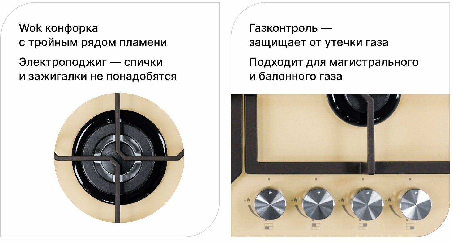 Газовая варочная панель LEX GVG 640-1 IV, независимая, слоновая кость интересное: