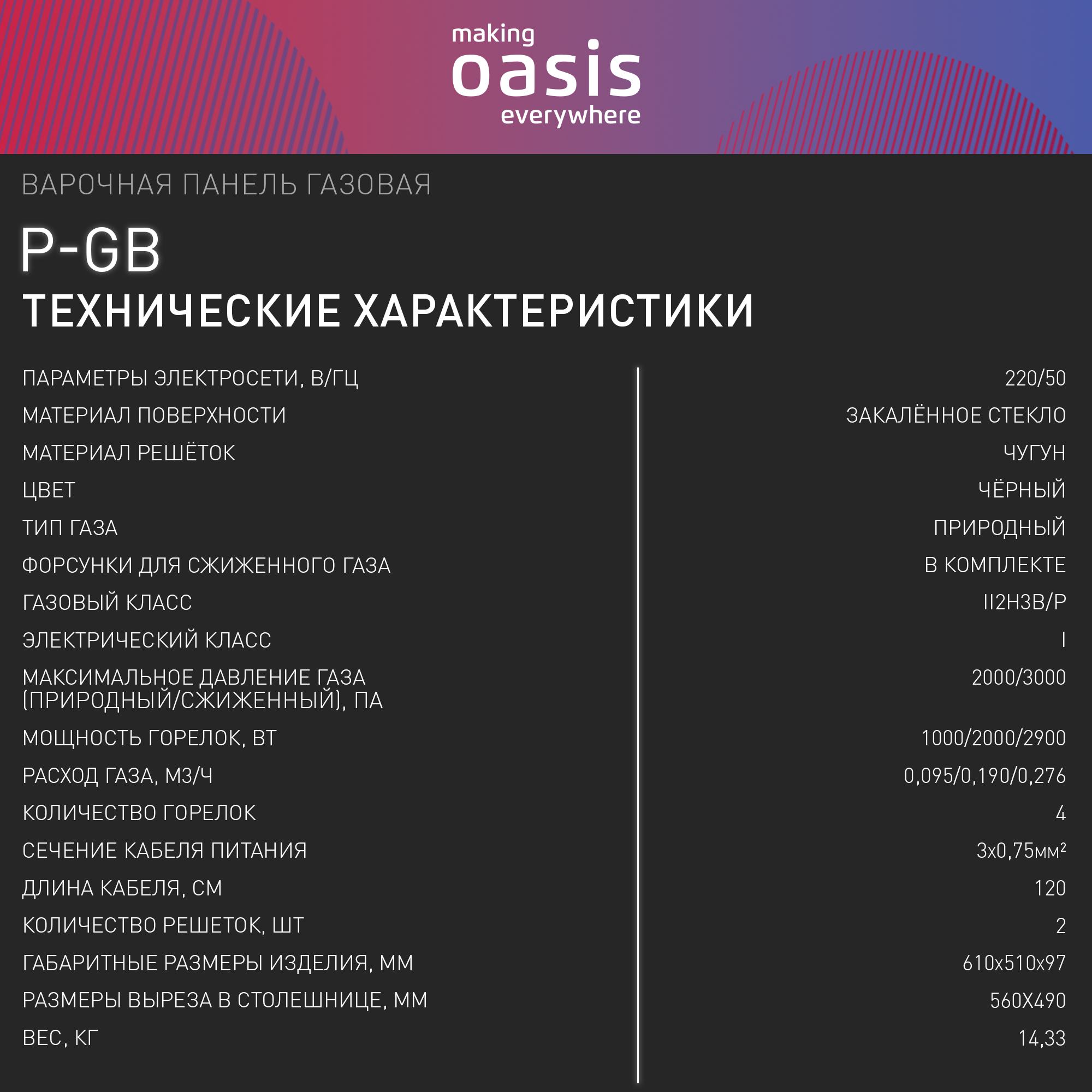 Поверхность газовая making OASIS everywhere P-GB (FN) черный (стекло, чугун, г/к)