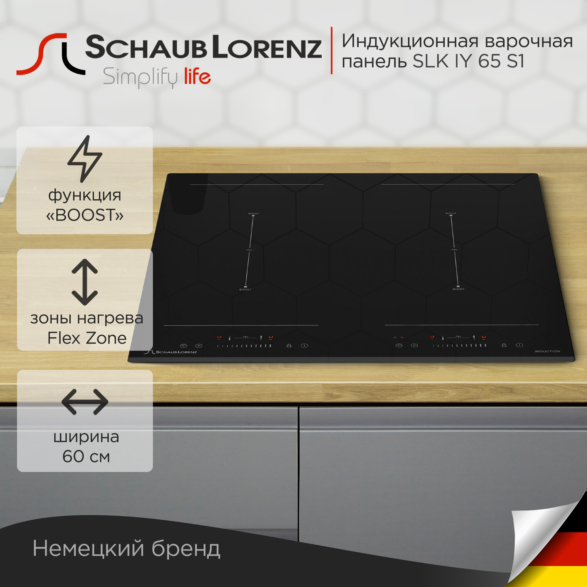 Индукционная встраиваемая варочная панель Schaub Lorenz SLK IY 65 S1, 60 см, Свободная зона нагрева Flex Zone.