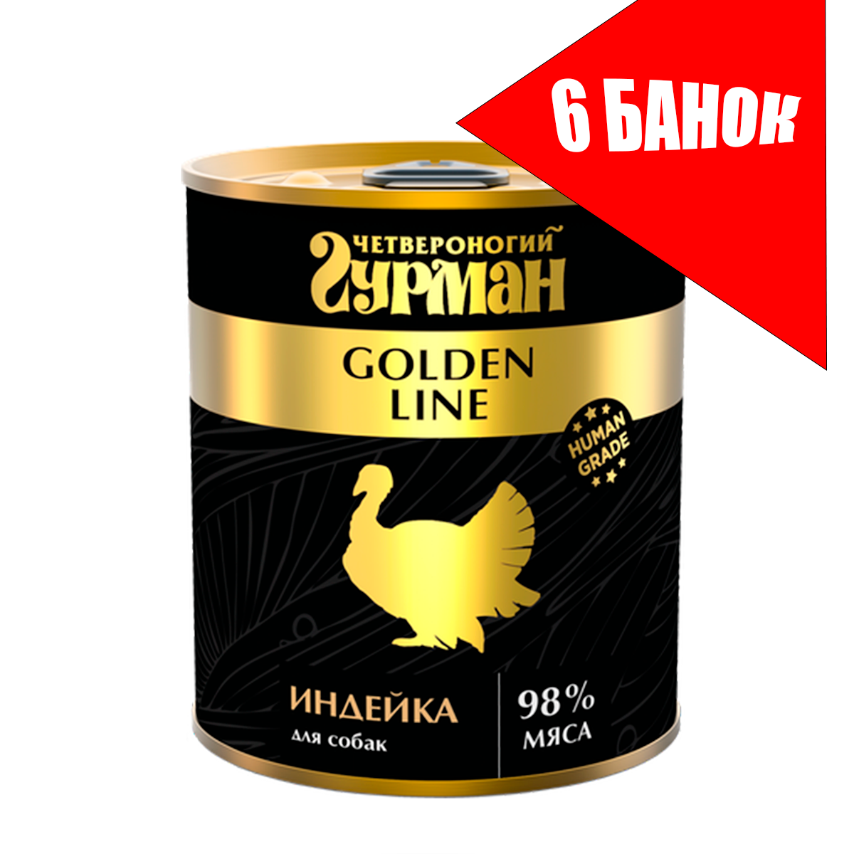 Купить Четвероногий гурман 6шт по 340г Golden Line Индейка натуральная в желе консервы для собак