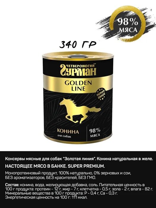 Корм консервированный для собак Четвероногий Гурман "Golden line Конина", 340 г х 6 шт.