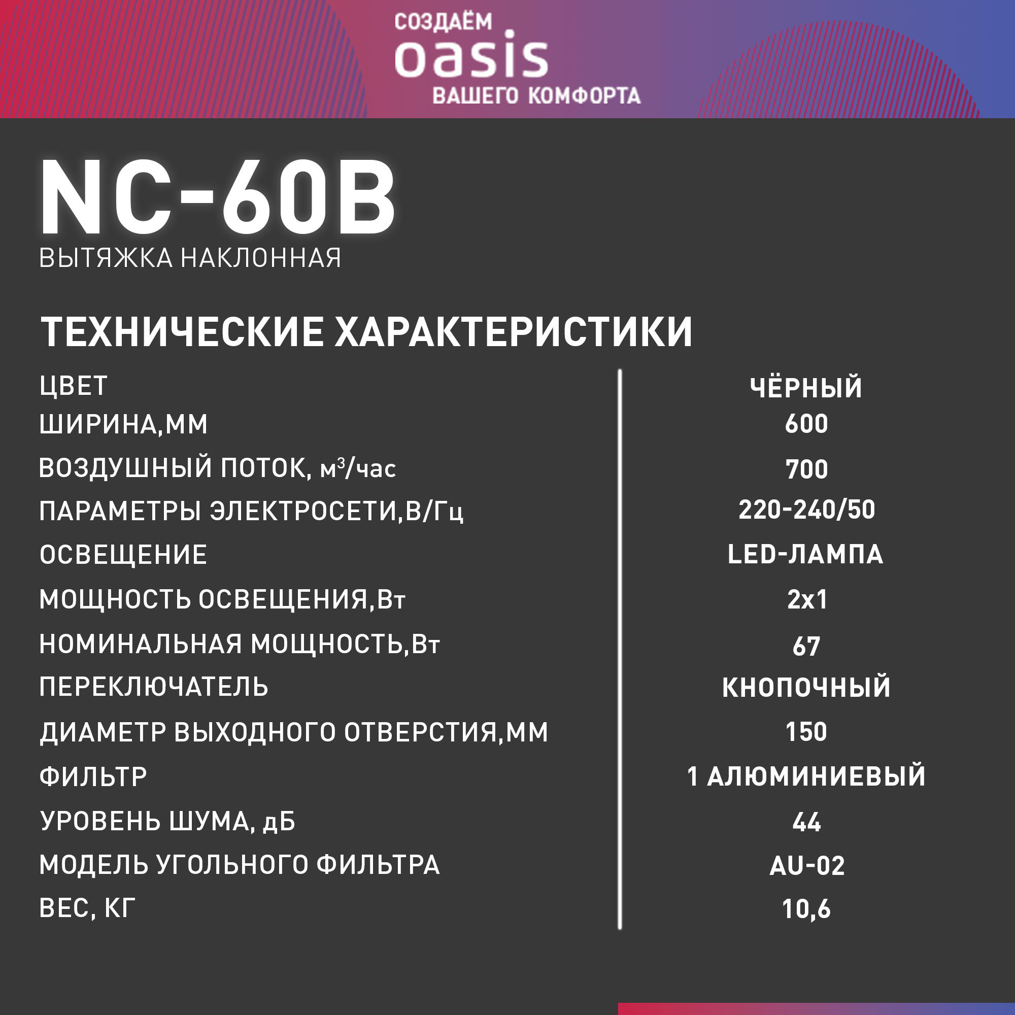 Вытяжка Oasis NC-60B