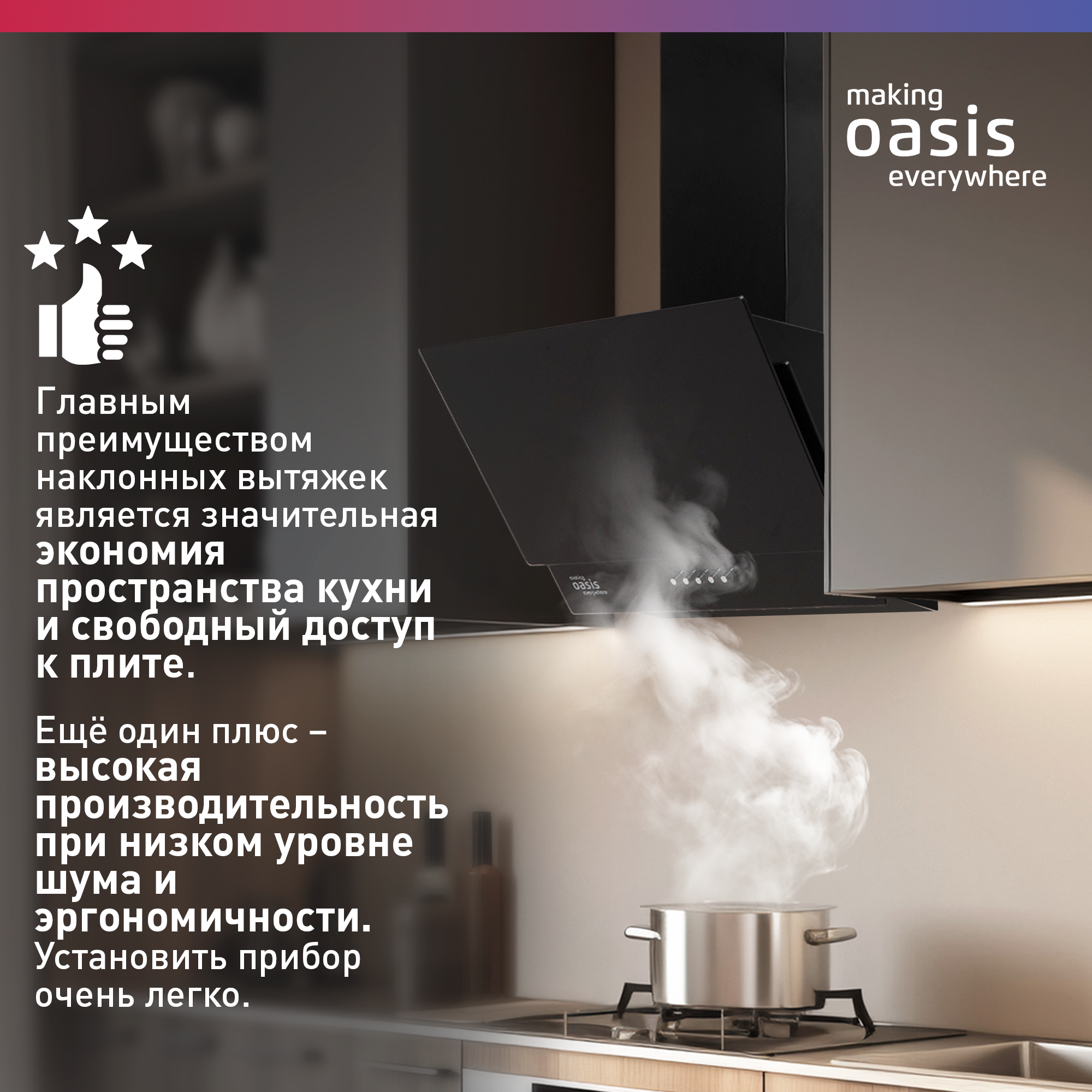 Вытяжка кухонная над плитой наклонная Oasis NC-60B, 60 см интересное: