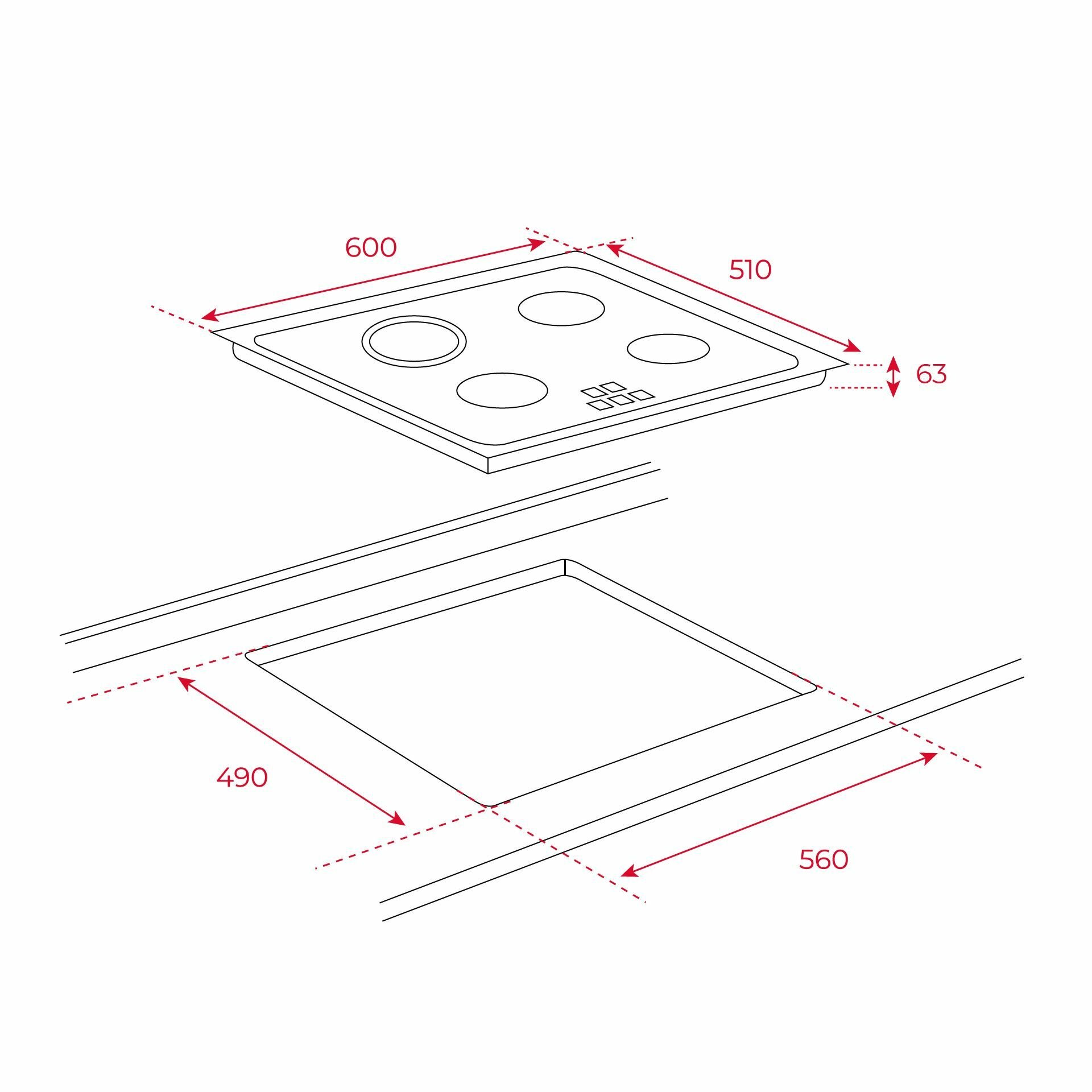 | Безопасность | защитное отключение конфорок / индикатор остаточного тепла / кнопка блокировки панели |