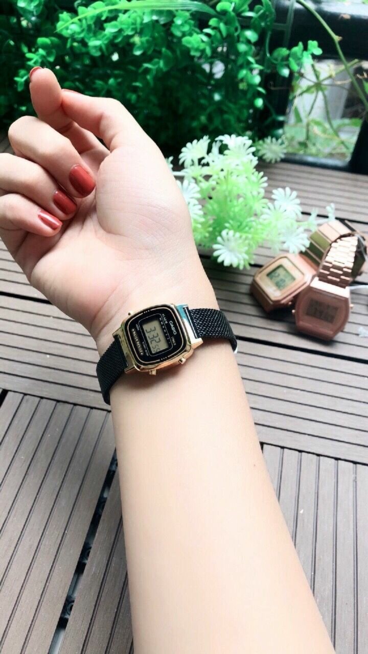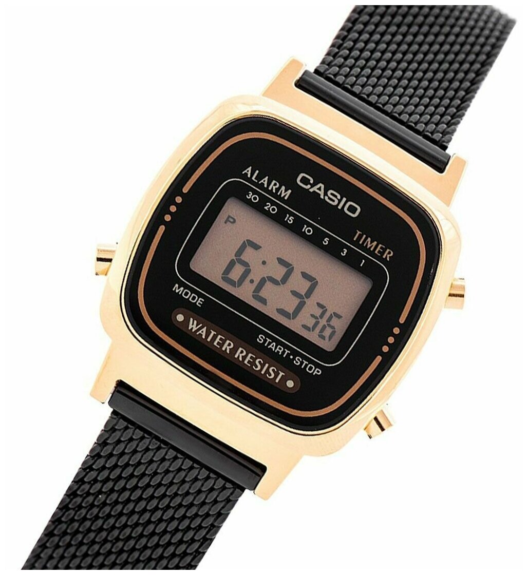 LA670WGA-9D Casio наручные часы кварцевые WR30 (3 атм) женские золотой секундомер, таймер обратного отсчета будильник отображение дня недели, отображение месяца, отображение числа акриловое стекло
