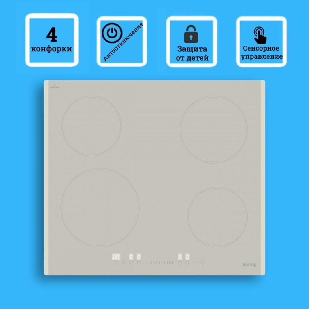 Индукционная варочная панель Korting HI 64560 BB, 60 см, бежевая стеклокерамика, сенсорное управление, функция Twin Booster, таймер, индикация остаточного тепла, блокировка панели, автоматическое отключение