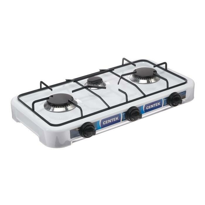 Газовая плитка CENTEK Ct-1522, белая, 3 конфорки, эмалированная сталь