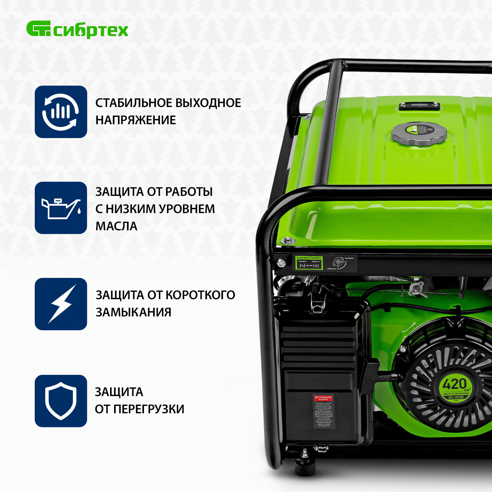 Генератор бензиновый Сибртех БС-8000 6, 6 кВт, 230В, 4-х такт, 25 л, ручной стартер 94547