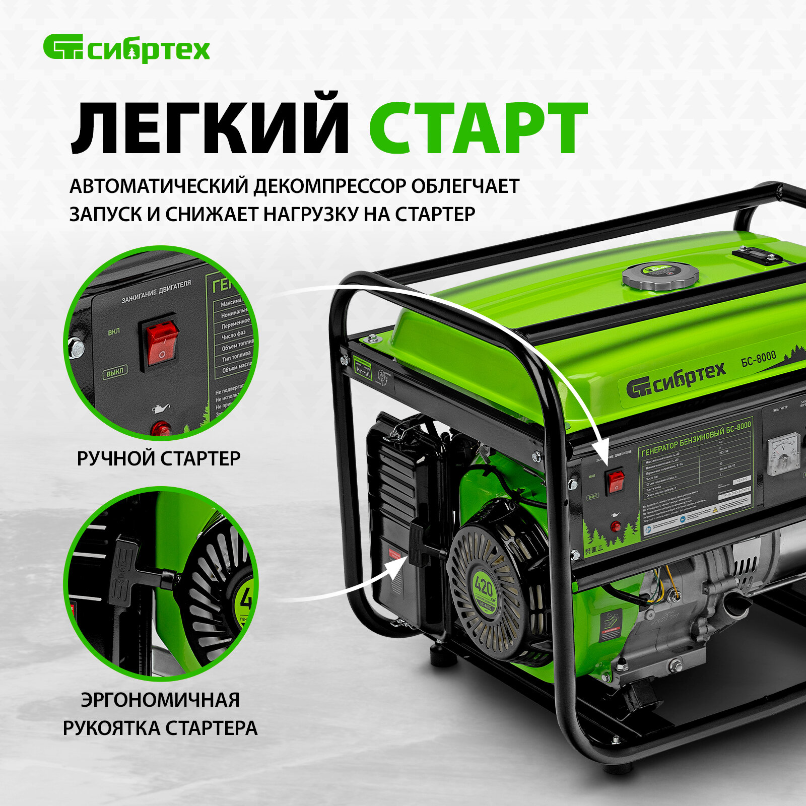 СИБРТЕХ Генератор бензиновый СИБРТЕХ БС-8000 94547