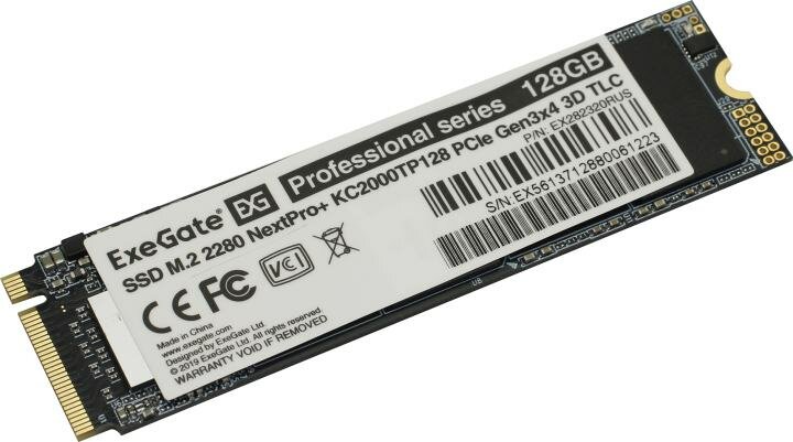 Накопитель SSD M.2 2280 128GB ExeGate NextPro+ KC2000TP128 (PCIe Gen3x4, NVMe, 22x80mm, 3D TLC)EX282320RUS