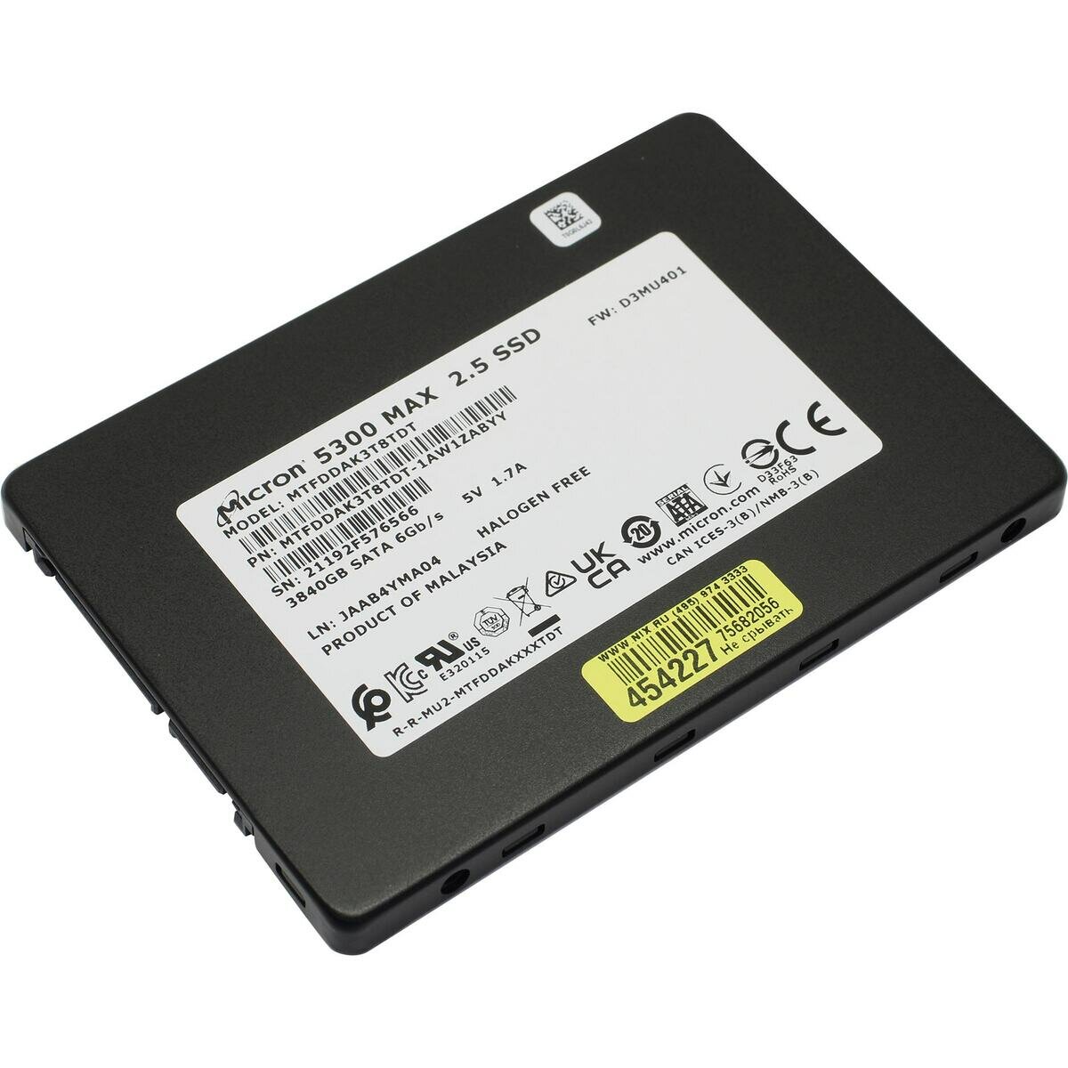 SSD диск Crucial Micron () 2.5" 5300 MAX Enterprise 3,84Тб SATA III TLC 3D (MTFDDAK3T8TDT-1AW1ZABYY)