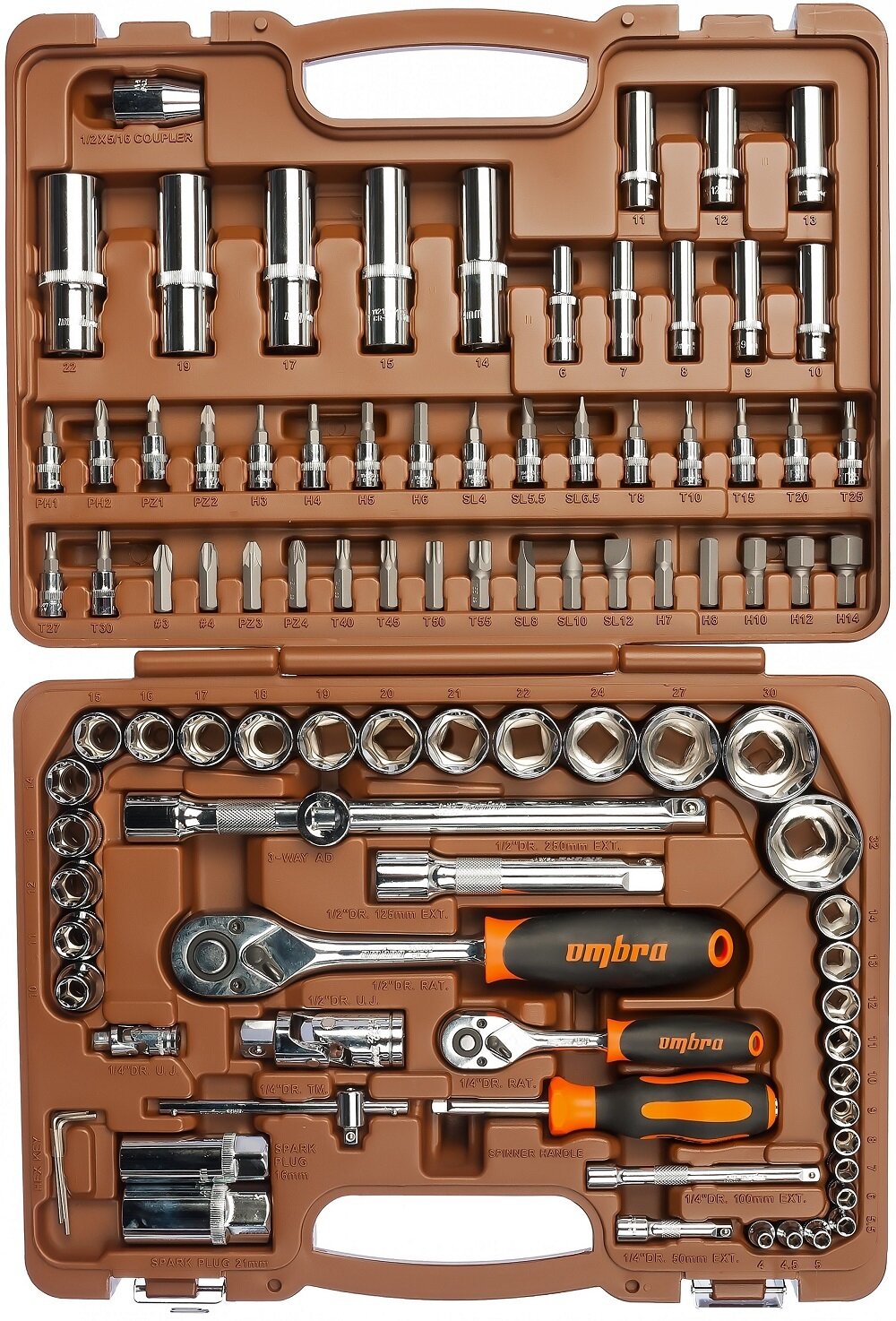 | Дополнительная информация | Набор инструмента универсальный 1/4", 1/2"DR, 94 предмета Ombra |
