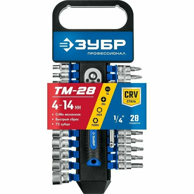 Купить ЗУБР ТР-28, 28 предм., (1/4″), набор торцовых головок, Профессионал (27645-H28)