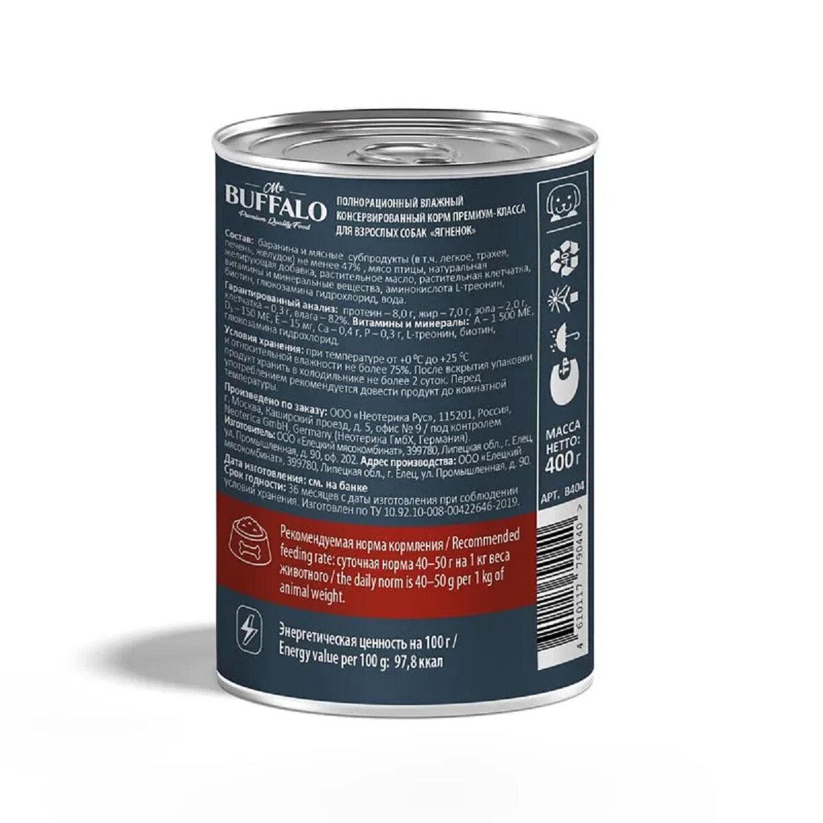 Консервы Мистер Бафало для взрослых собак Ягненок (цена за упаковку) 400г х 9шт