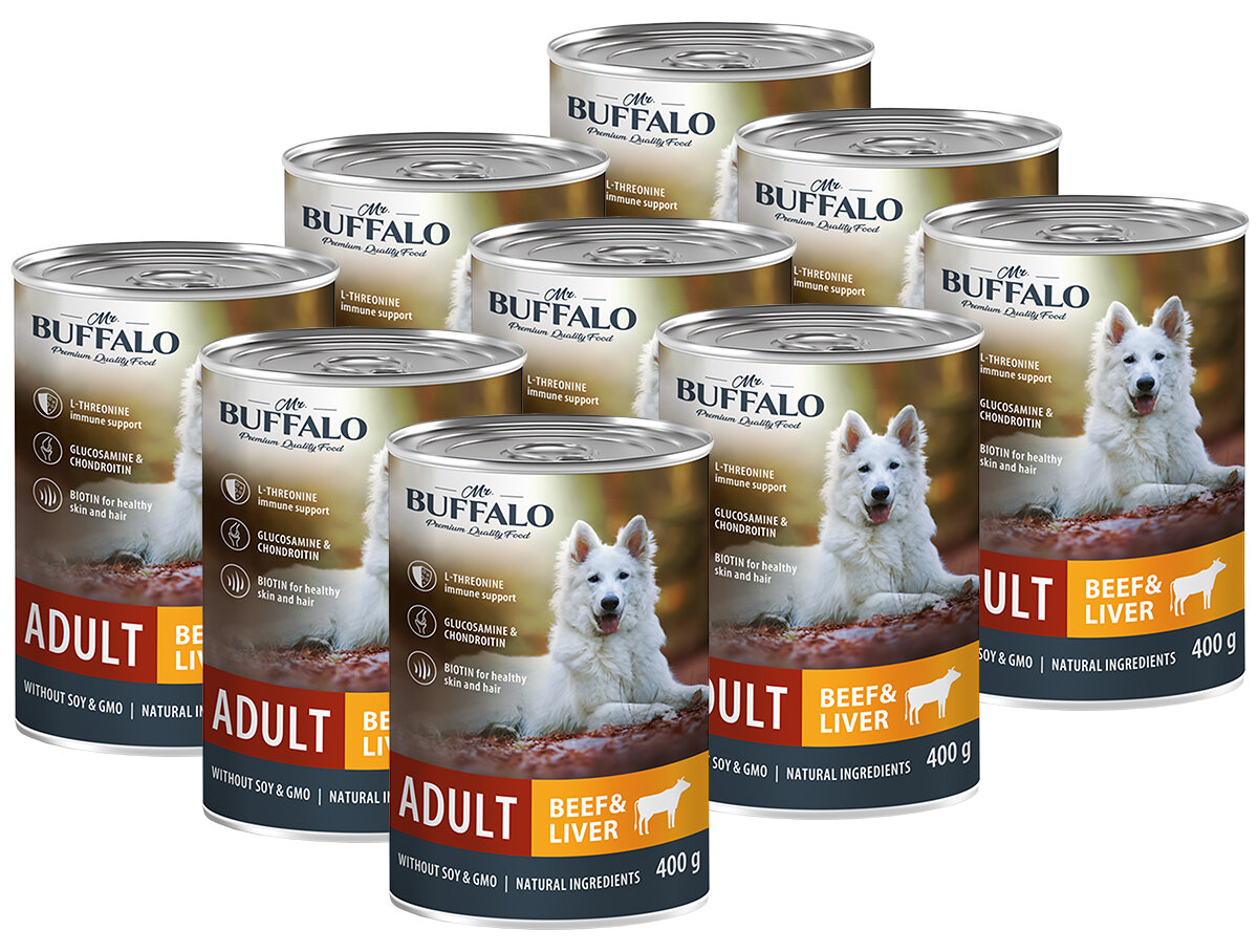 Баффало Mr.Buffalo Adult Dog 6 шт по 400г говядина и печень консервы для собак